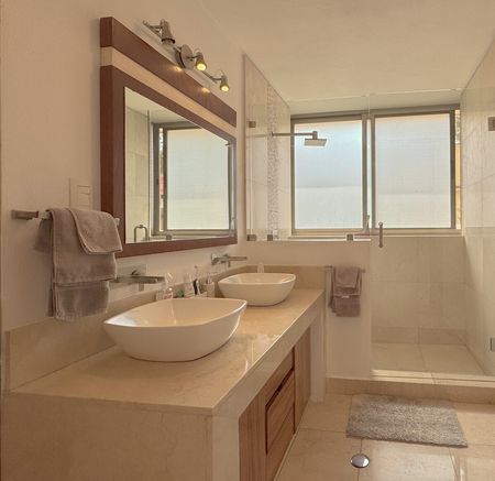 Fue renovada en su totalidad, incluyendo instalaciones eléctricas e hidrosanitarias, la propiedad se destaca por el uso de materiales nobles: placas de mármol en gran formato que realzan los espacios, puertas sólidas de madera de tzalam y pisos de la misma madera con un espesor de 19 mm, que aportan una elegancia atemporal y sofisticada. La arquitectura en formato abierta le brinda mucha amplitud y espacios generosos con buena iluminación y hermosas vistas al jardín.