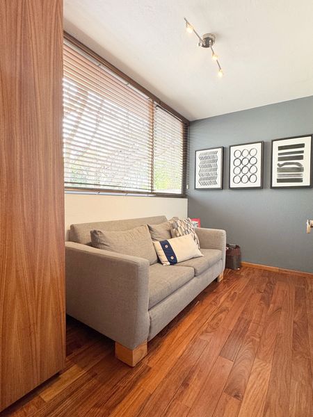 La residencia también integra un despacho, área de TV, cuarto de lavado, cuarto de servicio (actualmente acondicionado como gimnasio) y estacionamiento para cinco autos.