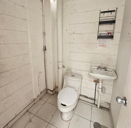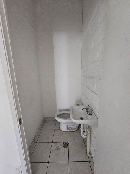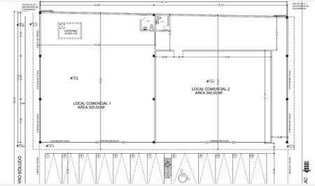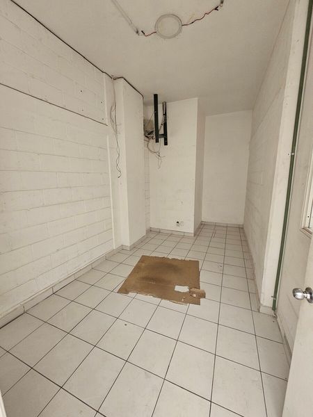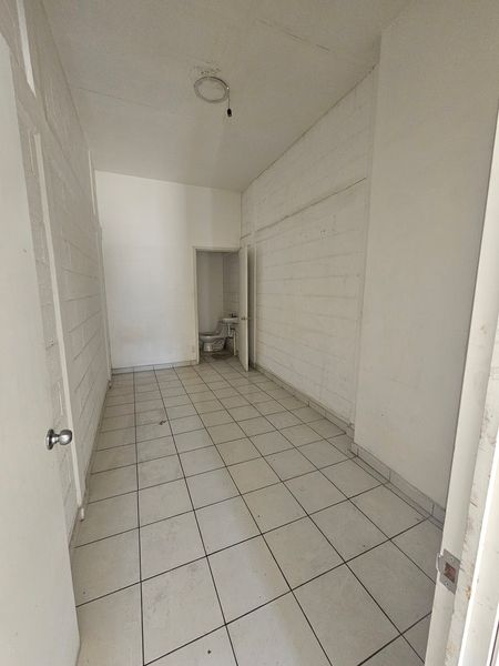 El local es prácticamente rectangular, con una división atrás para usar como bodega/oficinas. En esta área tiene un baño.