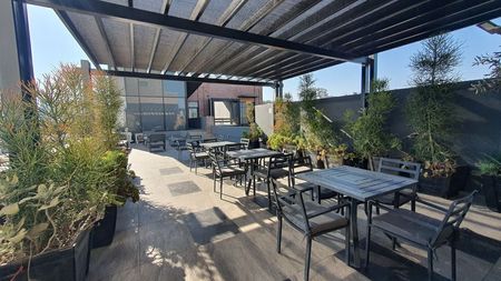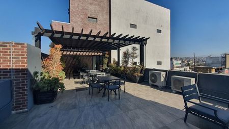 Moderno edificio que cuenta para sus inquilinos con áreas comunes de productividad y conexión como: terraza, amplia sala de juntas compartida en tercer piso, amplio estacionamiento estacionamiento.