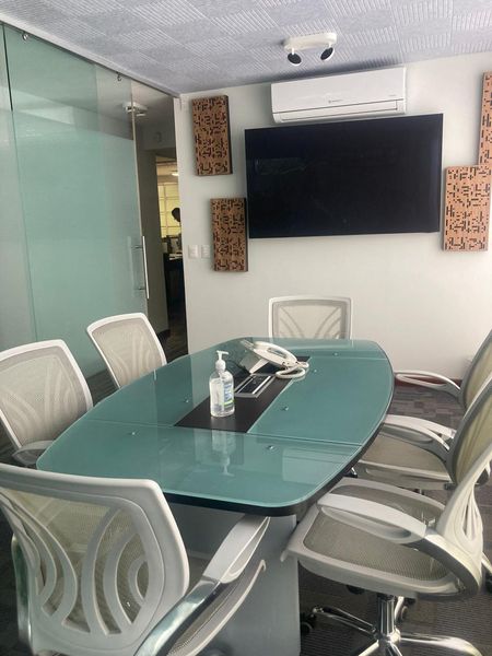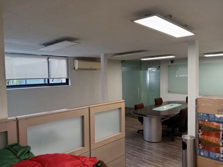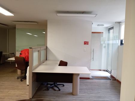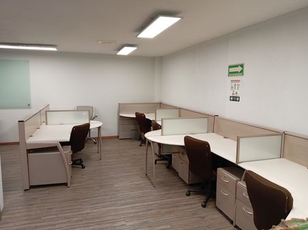 Oficina silenciosa, ideal para arquitectos, contadores, abogados, programadores, redactores. de 68 m2, en PB, con 9 escritorios y sillas, aire acondicionado, iluminado. Servicio de recepcionista, baños, vigilancia, incluidos en la renta, el agua y luz, se ajustará como mantenimiento.