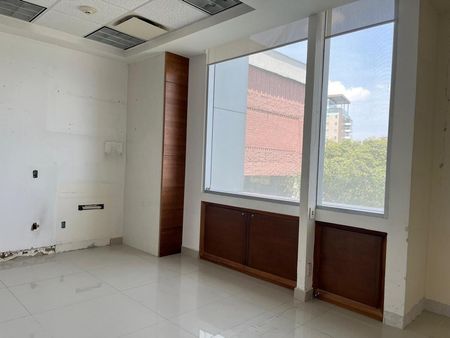 99 m2 rentables con recepción, sala de espera, dos privados, sala de juntas, baño privado, área de trabajo con divisiones de tablaroca para adecuar según necesidades. Espacio para cocineta o estación de limpieza.