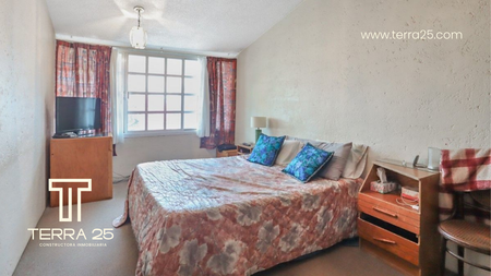 Departamento de 110 m2, 2 recamaras cada una con baño y vestidor, sala y comedor, cocina y patio de servicio.
