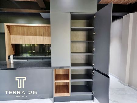 Al entrar, te recibirá una amplia sala de estar y comedor, bañados por la luz natural que se filtra a través de los grandes ventanales. La cocina abierta, se presenta como un espacio funcional y estilizado para los amantes de la gastronomía.