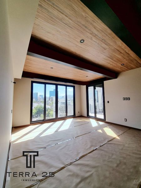 En el primer nivel, encontrarás dos habitaciones bien iluminadas, acompañadas de dos baños completos, brindando privacidad y comodidad a los residentes y visitantes. La atención se centra en la escalera que conduce al segundo nivel, donde aguarda la joya de este Penthouse: la habitación principal. Este oasis privado cuenta con un vestidor elegante y un lujoso baño propio, creando un refugio exclusivo para sus ocupantes. Además, la habitación principal tiene acceso directo al roof garden, ofreciendo vistas panorámicas de La Condesa.