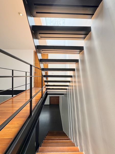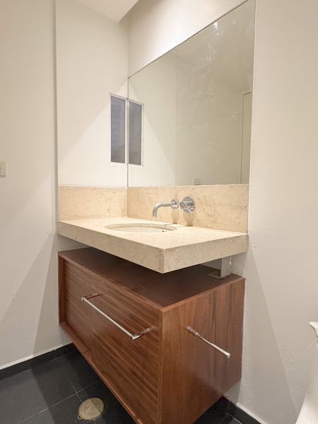 El penthouse, situado en el tercer nivel, cuenta con un total de 273 m² distribuidos en tres niveles: 177 m² de construcción habitacional más un amplio roof garden privado de 97 m². En la planta baja se encuentran una estancia con comedor, cocina integral de diseño, medio baño de visitas y una práctica bodega. En el segundo nivel se ubican dos recámaras, cada una con baño completo; la recámara principal cuenta además con espacio para vestidor. El rooftop es un verdadero oasis urbano, con terraza techada, área de asador al aire libre, cuarto de servicio, área de lavado y un baño completo, ideal para reuniones y momentos de relajación al aire libre.