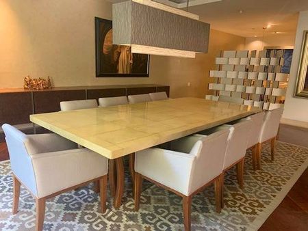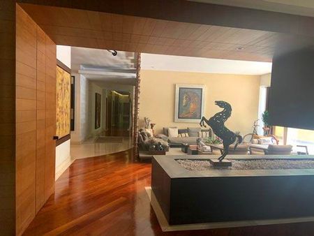 Divino departamento planta jardín, proyecto del Arq. Sordo Madaleno en calle cerrada con estricta vigilancia. Techos altos. Vistas verdes. Acabados de alta calidad. Amplia estancia con chimenea eléctrica y salida a la terraza. Antecomedor. Estudio. Family room. Cada recamara con baño, vestidor y acceso al jardín o la terraza. Jardín privado de 161 mts. Terraza de 80 mts. Calefacción. 2 cuartos de servicio. Lavandería. 2 bodegas. Edificio muy tranquilo de solo 8 departamentos. Amenities: jardín, gimnasio, cancha de pádel, alberca techada y estacionamiento de visitas. Doble vigilancia.