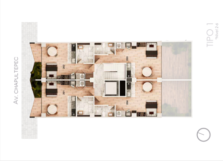 Conformado por 34 elegantes y prácticos departamentos distribuidos en 10 niveles, este desarrollo ofrece un estilo de vida moderno y sofisticado. Además, cuenta con un local comercial ubicado en la planta baja del edificio, con vista a la calle, que añade conveniencia y oportunidades comerciales.