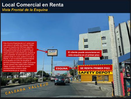 Local comercial en renta en la zona de VALLEJO Potencia tu marca con este local comercial ideal para tiendas, restaurantes, cafeterías, oficinas, escuela, consultorio, outlet de ropa, etc. cualquier giro comercial. Ubicado en una zona de alta afluencia peatonal y vehicular, te brinda la visibilidad y comodidad que necesitas.