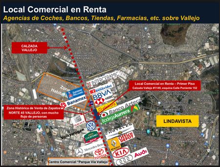 Situado en la colonia Lindavista Vallejo, rodeado de restaurantes, oficinas, bancos y comercios reconocidos.