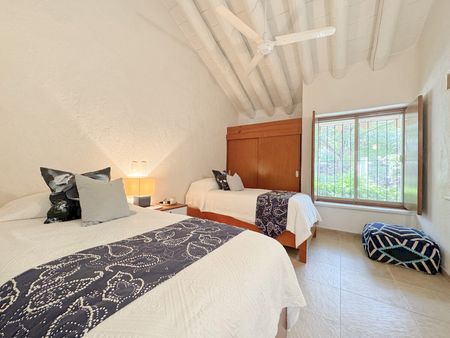 La casa cuenta con 4 amplias recámaras. La recámara principal tiene baño, una pequeña sala, vestidor, jacuzzi y terraza privada, mientras que las recámaras secundarias disponen de baño completo y vistas al jardín. Además, hay un tapanco que puede funcionar como sala de TV o espacio adicional para invitados.