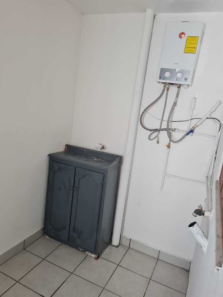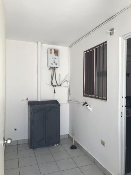 Instalación para lavadora, secadora y tanque de gas de 30 litros. Lámparas en sala y comedor.