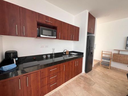 -Cocina equipada con gavetas, estufa y refrigerador.