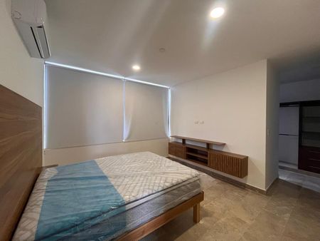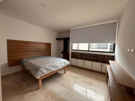 -Recámara principal con cama matrimonial, aire acondicionado y clóset vestidor