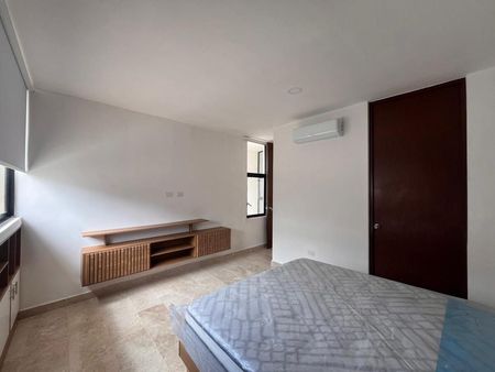 -Recámara secundaria equipada con cama matrimonial, aire acondicionado y clóset.