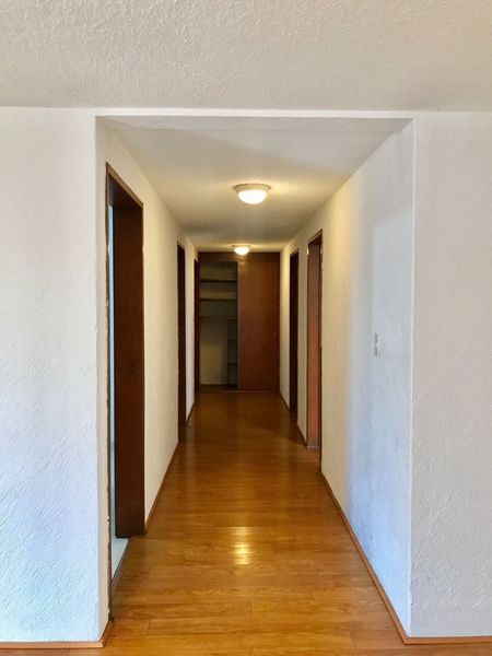 3 recámaras con clósets, amplia cocina integral, 2 baños completos recién remodelados con canceles de vidrio templado, cuarto de servicio con baño (o 4ta recámara), oficina, cómoda área de lavado y 2 lugares de estacionamiento.