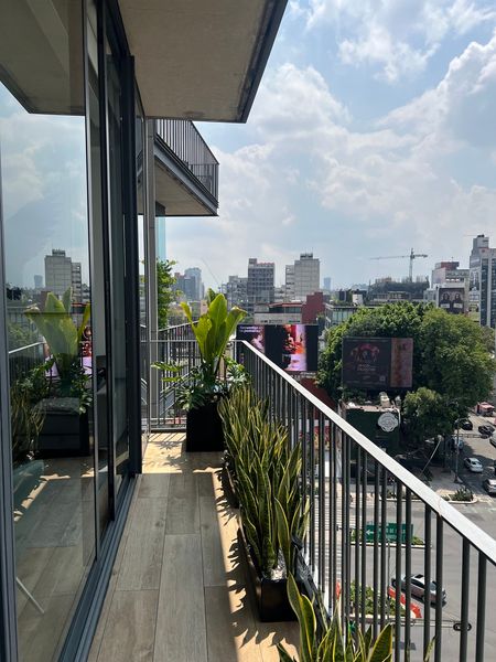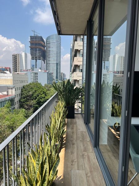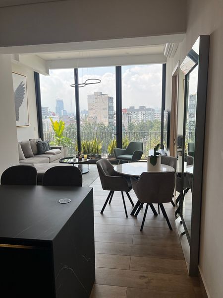 Precioso departamento en la colonia Juárez,, excelentes acabados de alta calidad, edificio prácticamente nuevo, moderno y vanguardista. Cuenta con dos balcones que permitan disfrutar de una vista panorámica, recámara principal con baño, segunda recámara tipo estudio. Todo el departamento está lleno de luz, climatizado con aire acondicionado, el segundo baño da servicio a la recámara secundaria y al departamento, hermosa y equipada cocina. El departamento vende amueblado y equipado como aparece en las fotos, todo con excelente gusto, impecable. Un lugar de estacionamiento fijo sin estorbarse con nadie. Información y citas : Sissi Fialdini 551952-9824