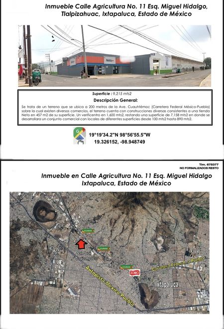 Este terreno se encuentra estratégicamente ubicado a tan solo 200 metros de la Avenida Cuauhtémoc, también conocida como la Carretera Federal México-Puebla, una importante vialidad que alberga una gran variedad de comercios y servicios.