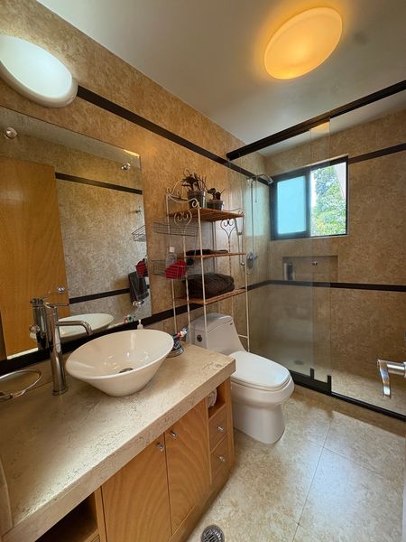 Planta Alta: tres recámaras cada una con baño completo (la recámara principal tiene vestidor y tina) y sala de TV.