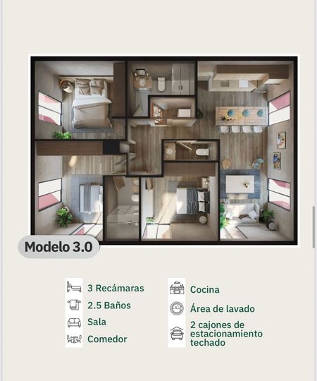Departamentos funcionales y modernos, con espacios bien distribuidos, iluminación natural y acabados de primera.