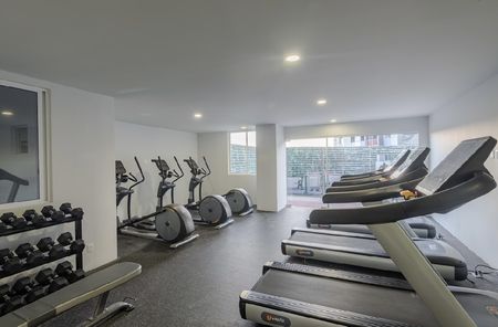 Gimnasio interior equipado.