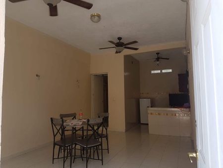 Recibidor / sala, comedor, cocina con barra desayunadora enlozada, alacena, fregadero, 2 baños y 2 recámaras.