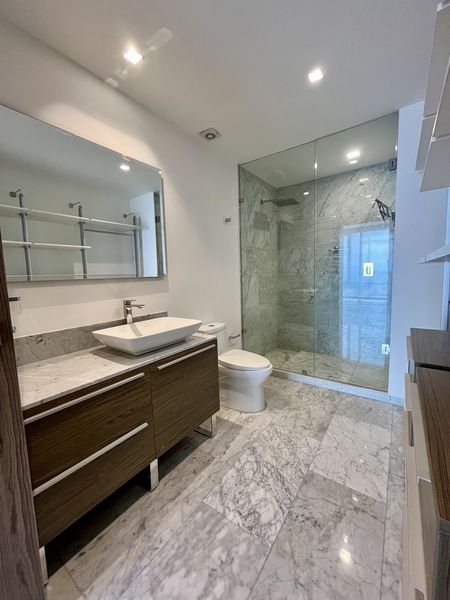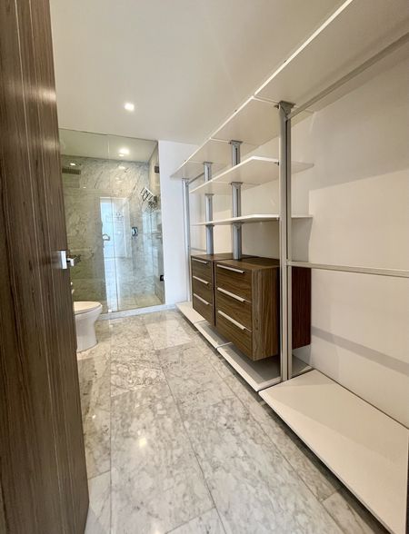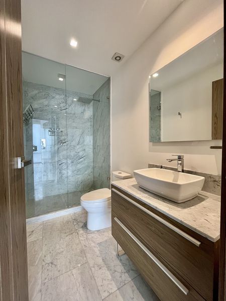 Acabados de lujo con pisos de madera de alta ingeniería, baños con marmol de carrara en pisos y regaderas, cocina italiana con cubierta de granito y barra, carpinteria importada.