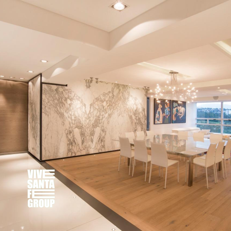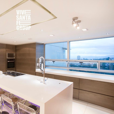 *Detalles en mármol de carrara, Madera de excelente calidad, concepto moderno abierto que integra cocina con la estancia y comedor con vistas panorámicas a la loma Bernardo Quintana y al bosque.(javier barros sierra).
